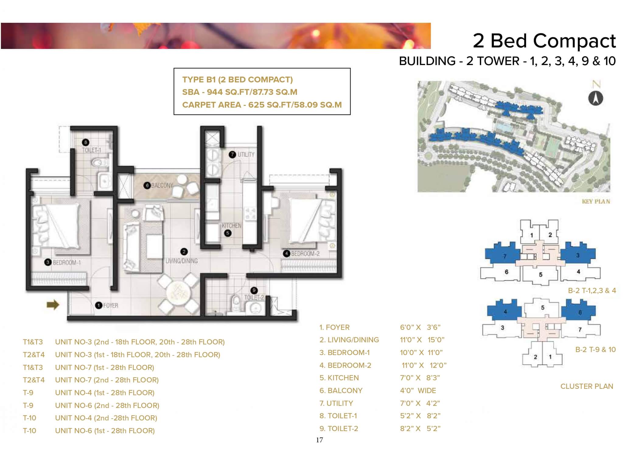 | 2 BHK Apartment | 944 - 979 sqft | 56.99 Lakhs Onwards* |