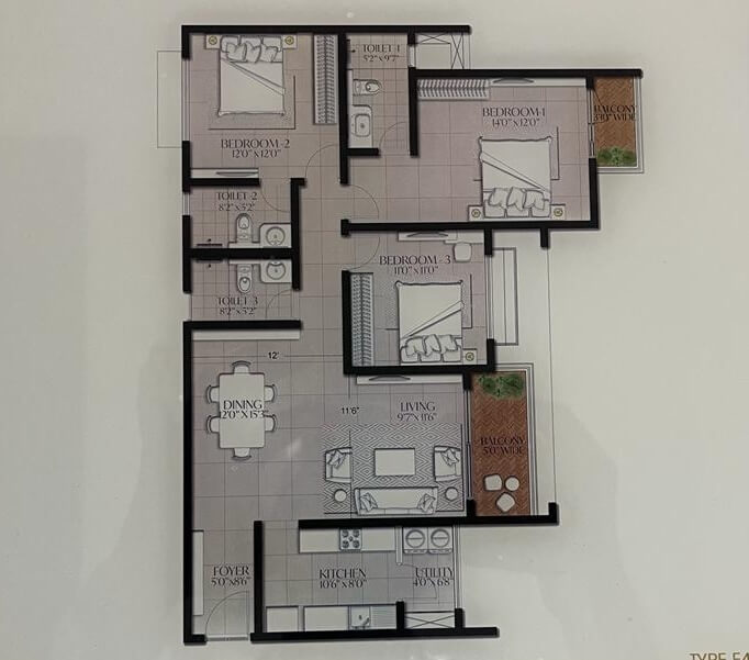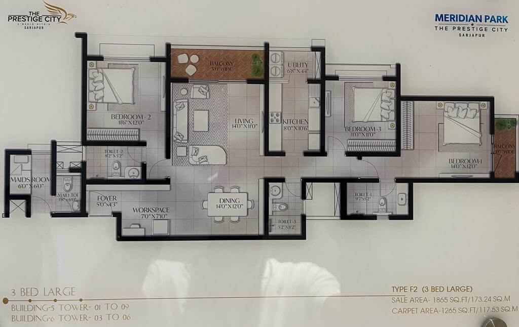 | 3 BHK | 1865 sqft | 1.15 Crores Onwards* |